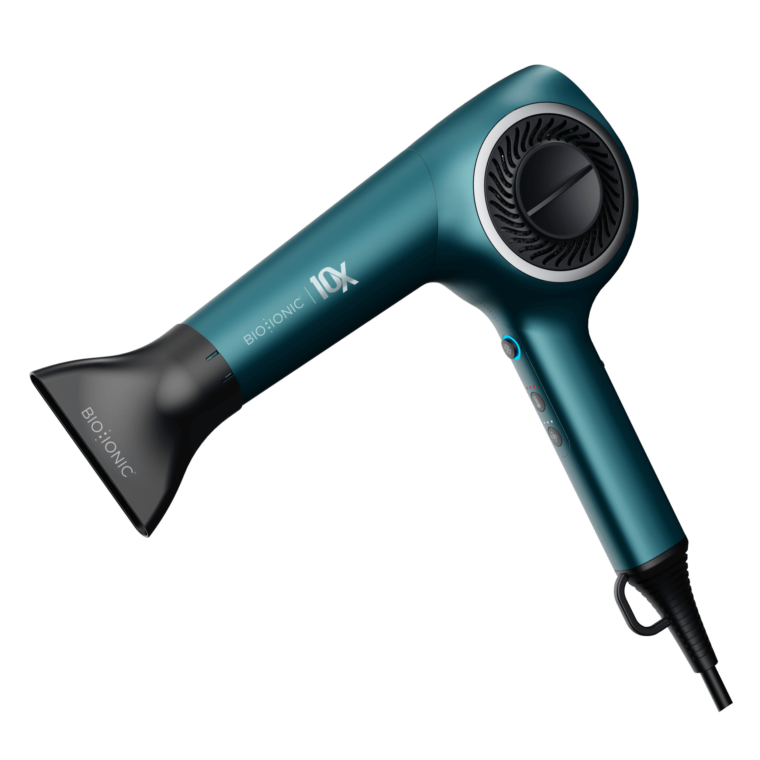 Upgrade your blowout routine with the high-performance 10X™ Dryer in a limited-edition teal hue. The Ion Generating Mineral Complex locks in moisture for smooth, conditioned, vacation-ready styles in less time.